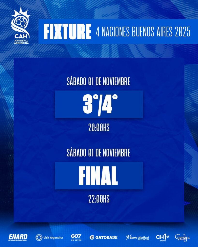 En un torneo que luego enfrentará a primero y segundo y tercero y cuarto para definir las posiciones finales, el sábado 1 de noviembre se disputará el duelo por el tercer puesto, a las 20hs, y la gran final, a las 22hs.