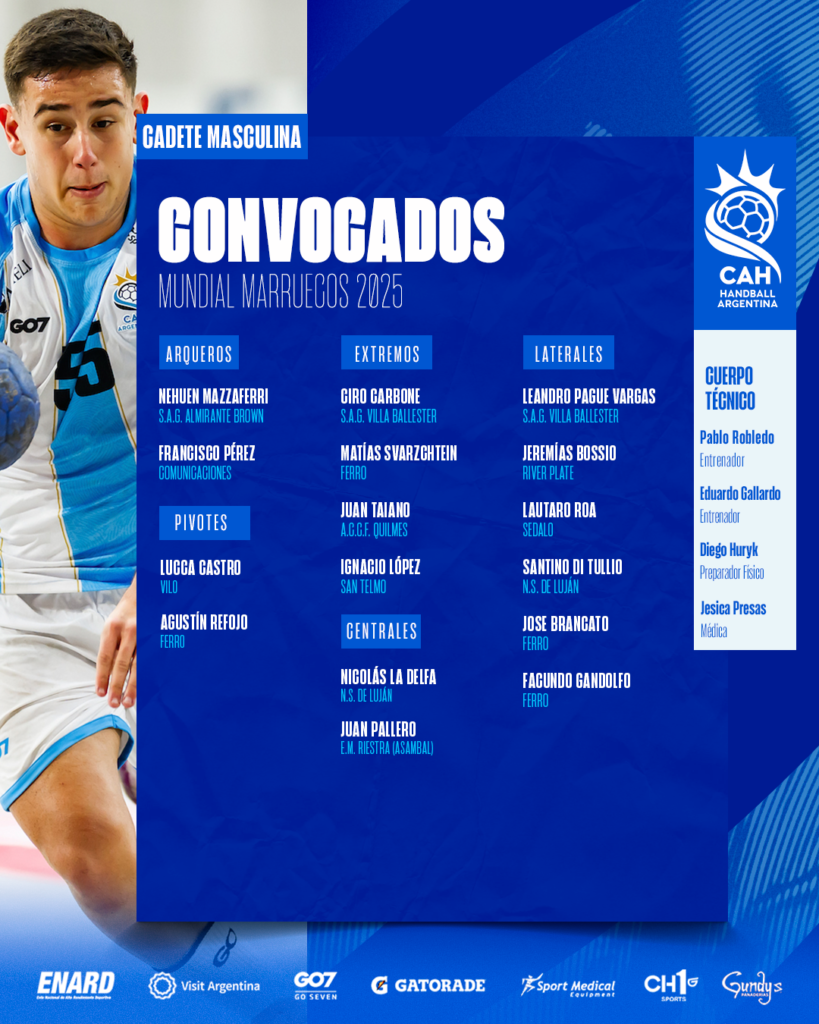 Argentina tiene sus 16 representantes para el novedoso evento que a partir de este año se incorpora al calendario mundial de la IHF. En el certamen que busca ofrecerle a jugadores jóvenes la chance de competir en el ámbito internacional, la Selección será parte del Grupo C con Alemania, Irán y Puerto Rico.
