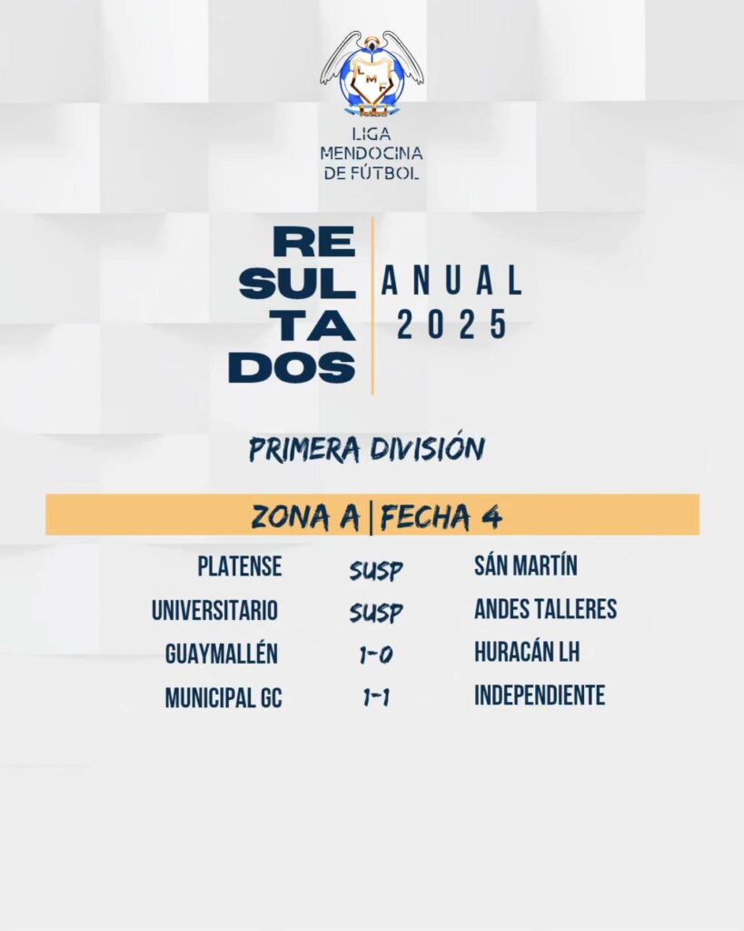 El sábado pasado, Mendoza fue escenario de una intensa jornada de fútbol en diversos campos de juego. Con una mezcla de goleadas, empates e incluso algunos partidos suspendidos, la Liga Mendocina de Fútbol celebró la cuarta fecha de su torneo. En esta edición, la competencia está organizada en tres zonas distintas.