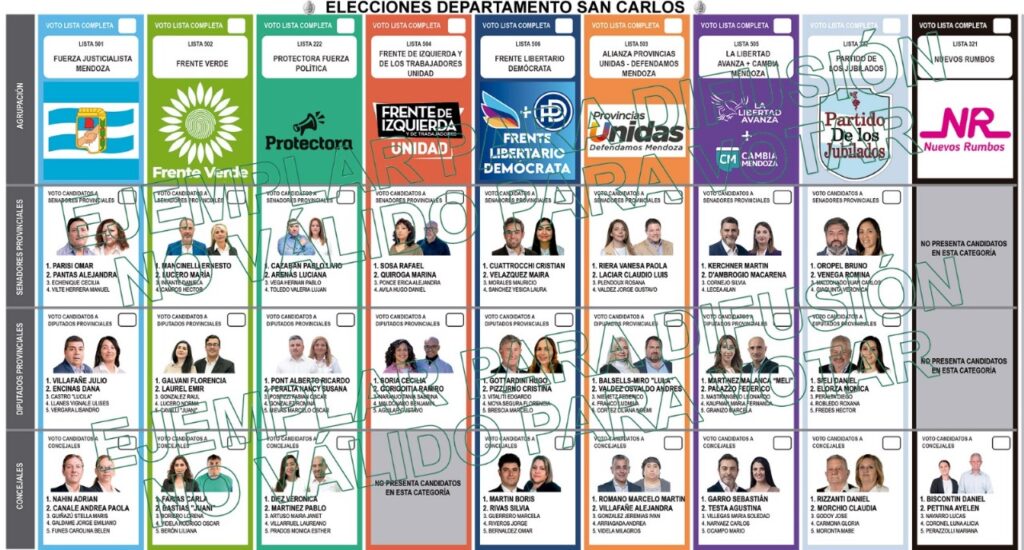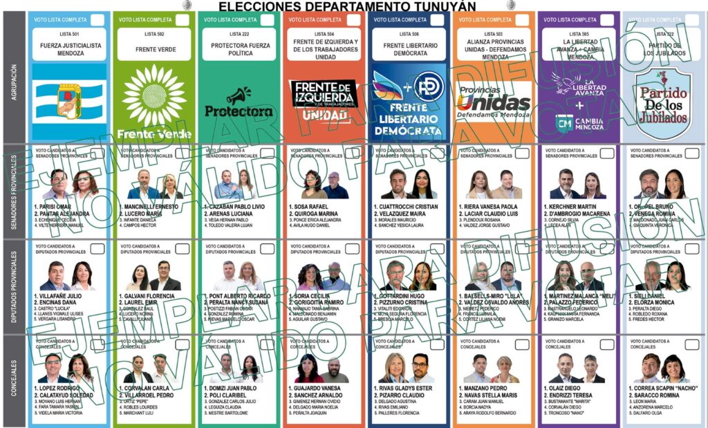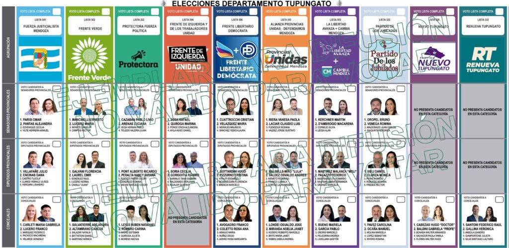 La junta electoral ha informado sobre los modelos de las Boletas Únicas en Papel (BUP) que se emplearán en cada departamento de Mendoza durante las elecciones programadas para el próximo 26 de octubre.